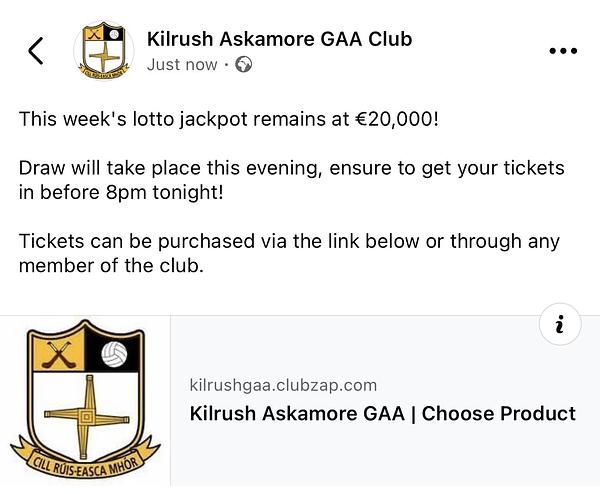 Draw will take place this evening, ensure to get your tickets in before 8pm tonight!